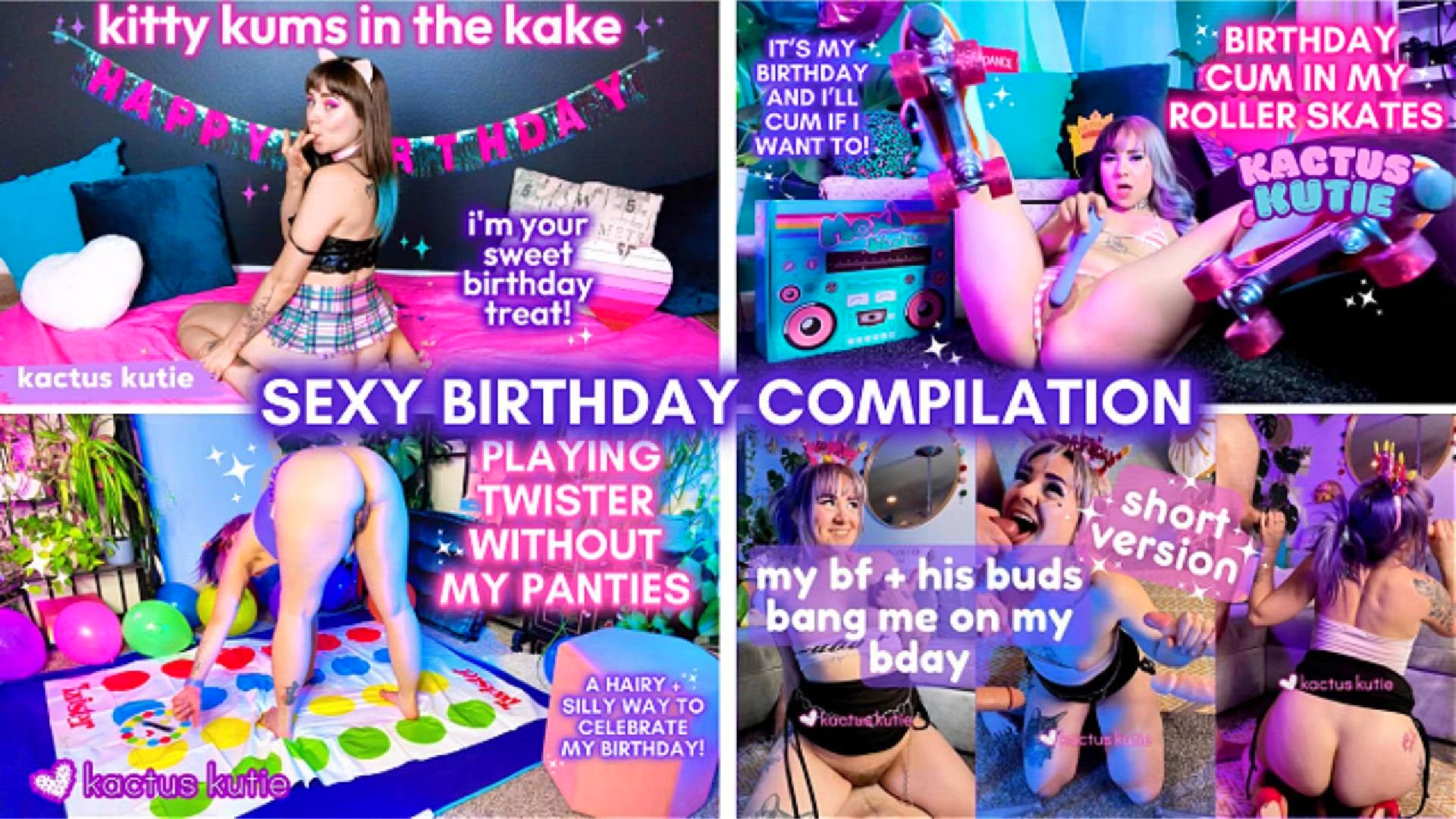 happy birthday to me!!! celebrate my 33rd birthday with a compilation of all my favorite sexy birthday videos throughout the years! 🎉💕✨ ♡ kitty kums in the kake (2019) ♡ birthday cum in my roller skates (2022) ♡ playing twister without my panties (2024) ♡ my bf + his buds bang be on my bday...