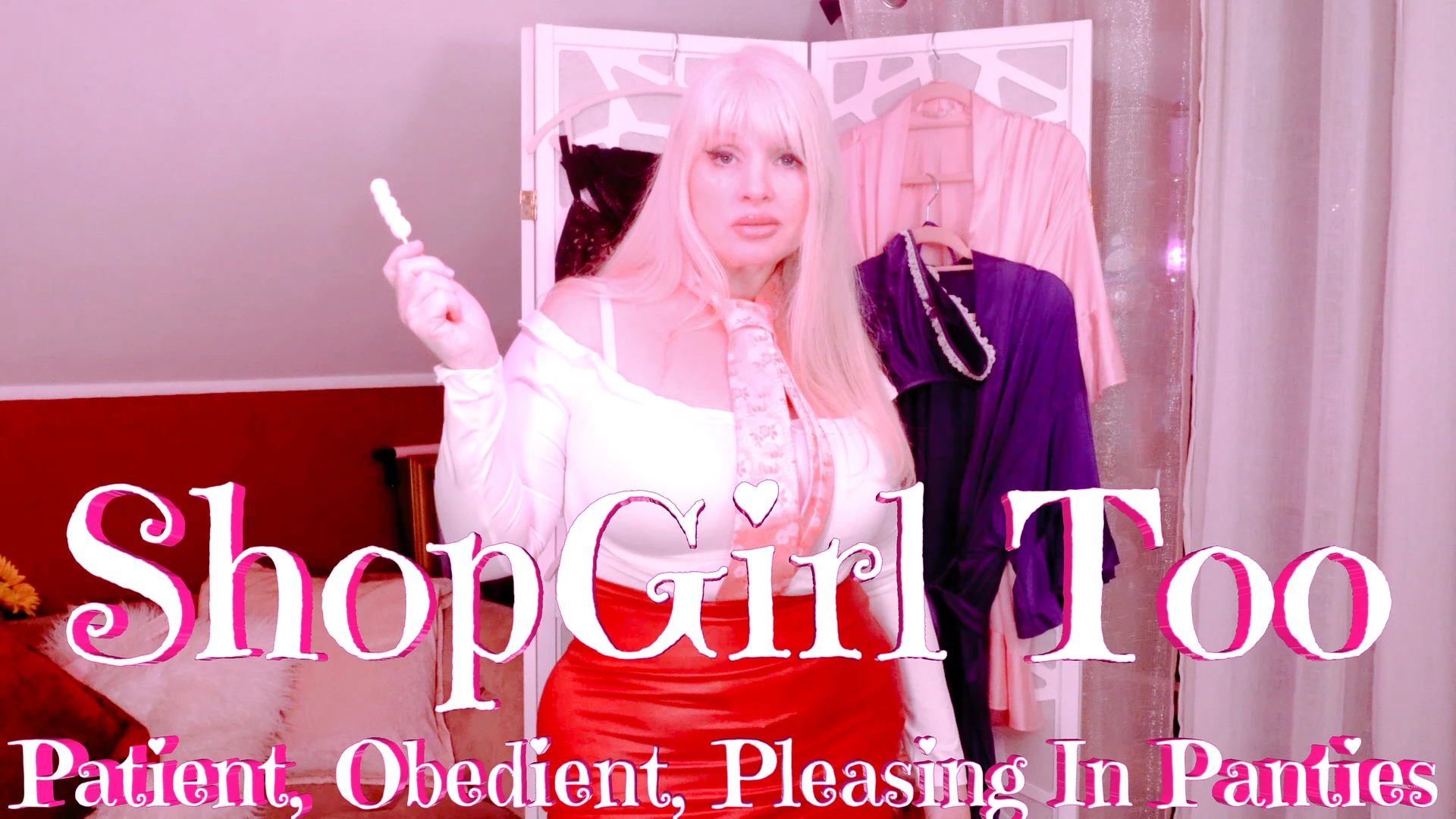 In part TOO of ShopGirl, Rosie and you begin to get a lot closer as you've become her right hand shopgirl as a very cohesive store management team. You begin to get more assignments now where you will be asked to show the other girls how it is done. You've become admirably the best panty model and sales woman in the shop. Today at the shop, we begin with lessons on patience, obedience, and pleasing Domme Rose in Pretty Satin Panties!