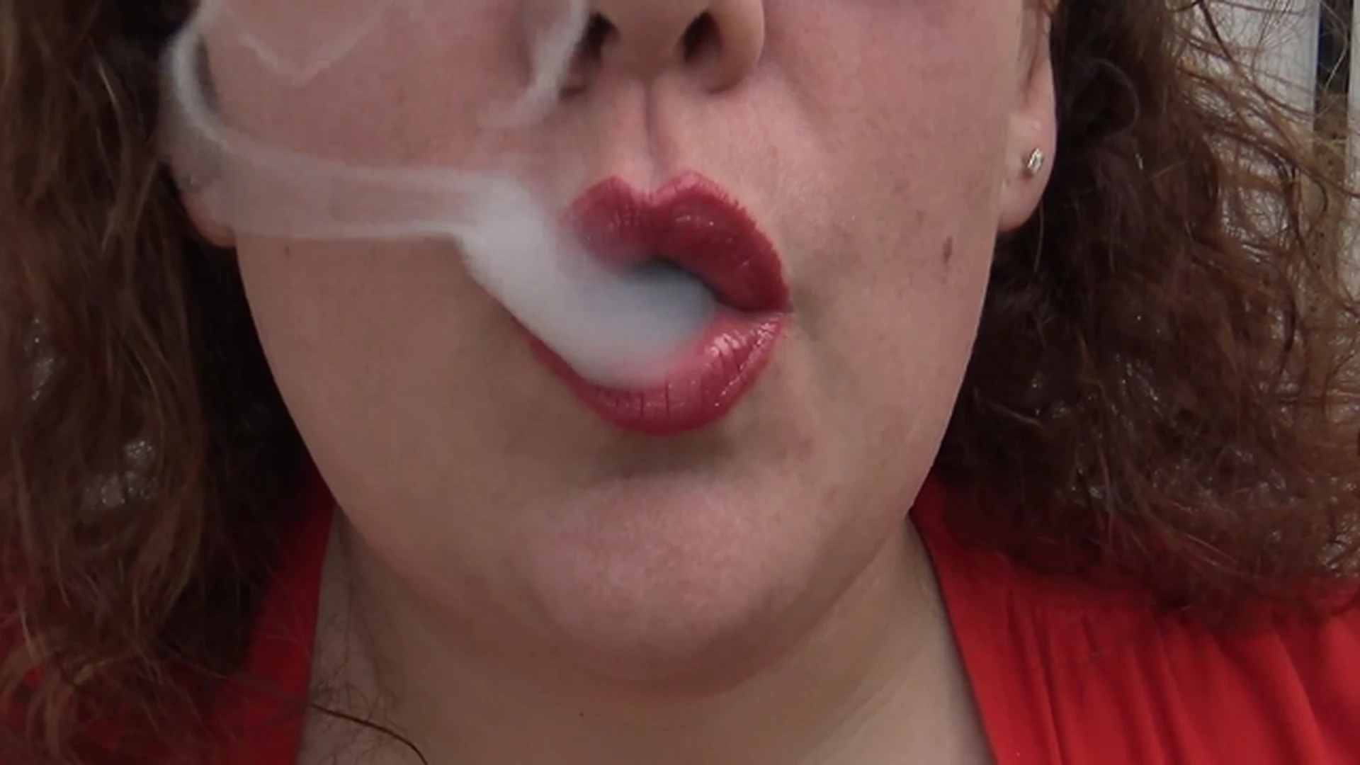 Enjoying a cigar outside on a lovely, sunny day. Watch me inhale and exhale. Beautiful red lips, sexy smile.