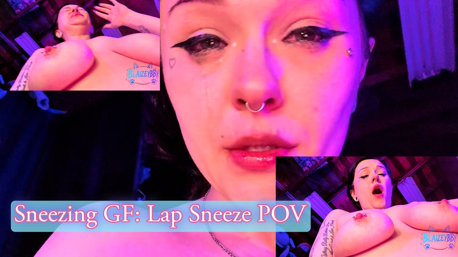 I'm your allergic girlfriend, cozy on your lap, when a sneezing fit hits hard. My eyes water and body shakes as I sneeze repeatedly, my huge tits bouncing with each one. Watch me get aroused from the sensation, teasing you with my pierced nipples until we both can't resist more.