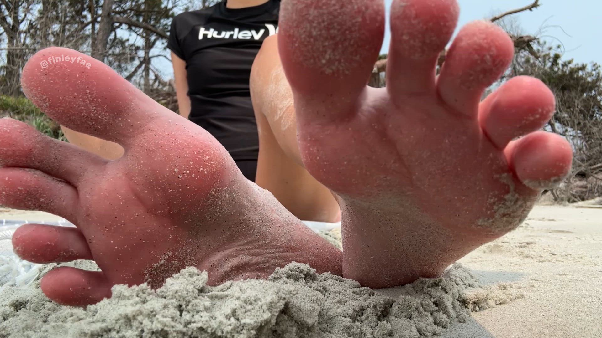 In this SFW clip, I don’t say a word. Watch me spread my feet wide and slowly rub them through the warm sand, feeling every grain against my soft soles while I relax on the beach.