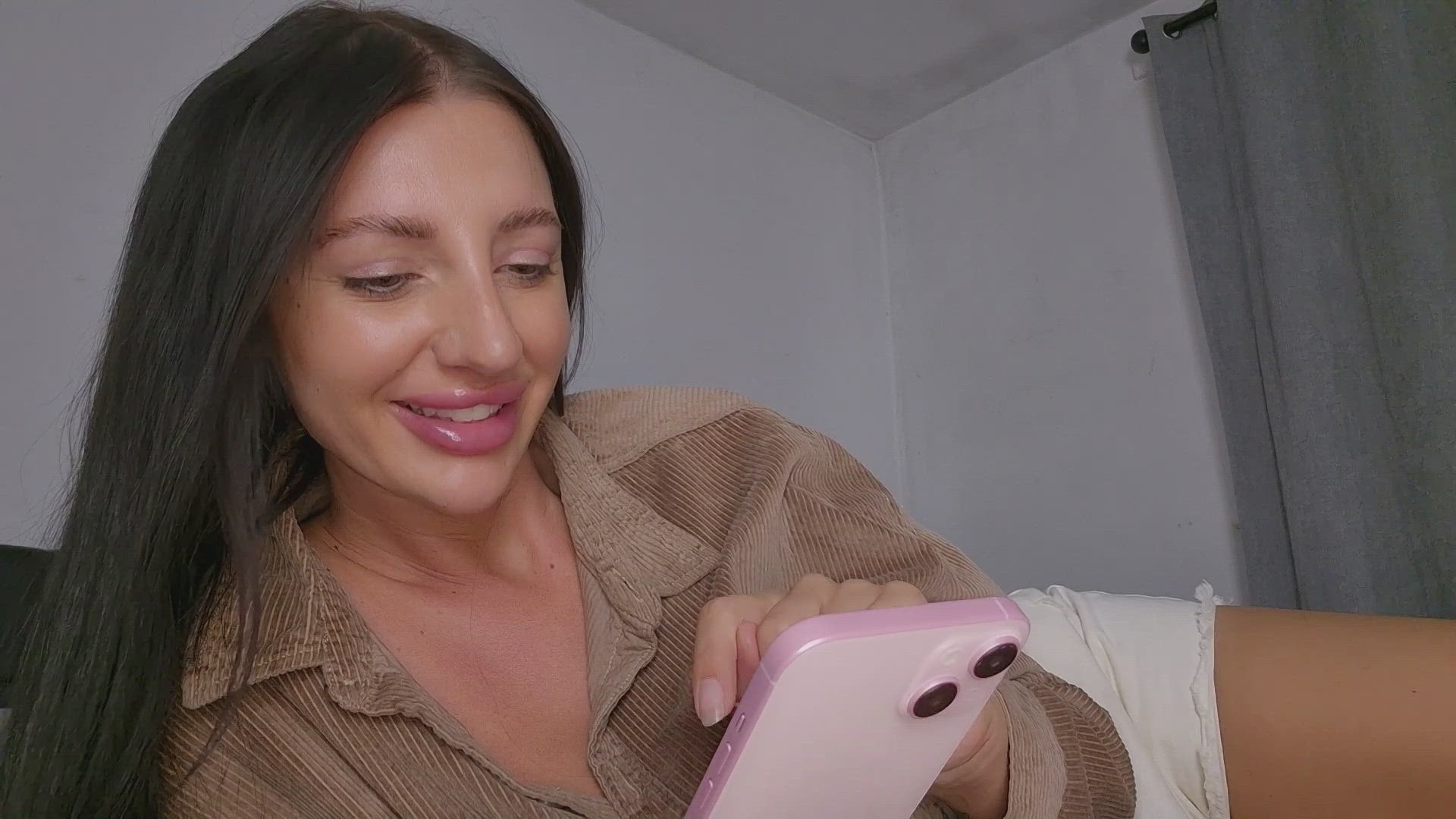 You're confused, they never text you. Your Step-sister gives you a cheeky grin, leaning closer to you, exposing her bra strap.