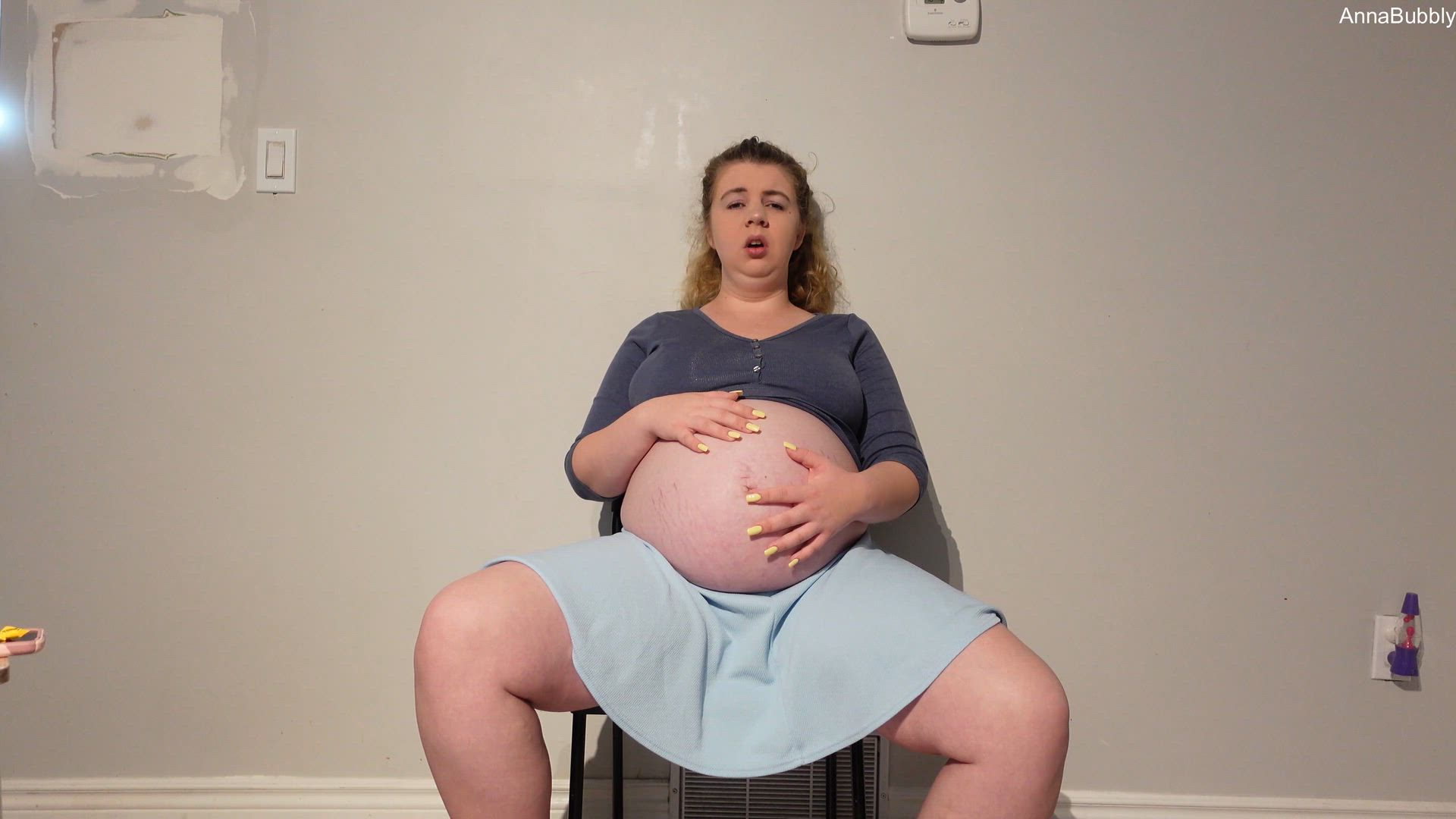 Your greedy step-mom has eaten all of your Halloween candy! I rub my big, full belly (40 weeks pregnant) and talk about how I love how I stuffed myself with every piece, boasting about how I knew I could fit it all in my big belly. I give some belly worship and talk proudly about how fat this candy will make my ass. I am fit to burst and appear a little ill from eating so much, but I did it. You point out one last piece of candy. I can't admit that I won't be able to fit that last piece in my belly so I eat it. Surely one more piece couldn't hurt? I start grabbing at my giant belly talking about how I am going to POP! I spend the last few minutes clutching and rubbing my big belly talking about how I am going to burst, I am going to explode, my stomach is actually going to pop! The screen goes black and you hear a POP!