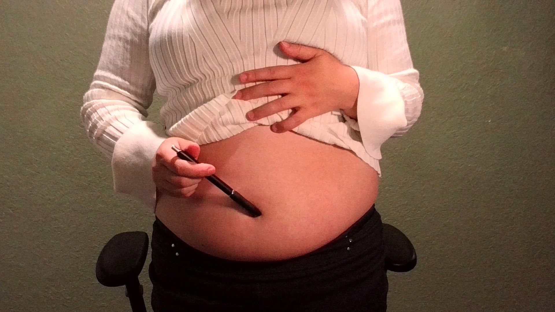 Pixie is so bored at work so she starts stretching and playing with her bellybutton. Her boss and co-workers thinks her bellybutton fetish is so weird and inappropriate for work but Pixie doesn't care! She loves her bellybutton so much and finds it so hot, she can't help but stretch and play with it at work. Even testing out how a pen and marker feels inside of it until she's too turned on and has to go home. --- This was a custom video! Want your own? Check out my custom video form! : )