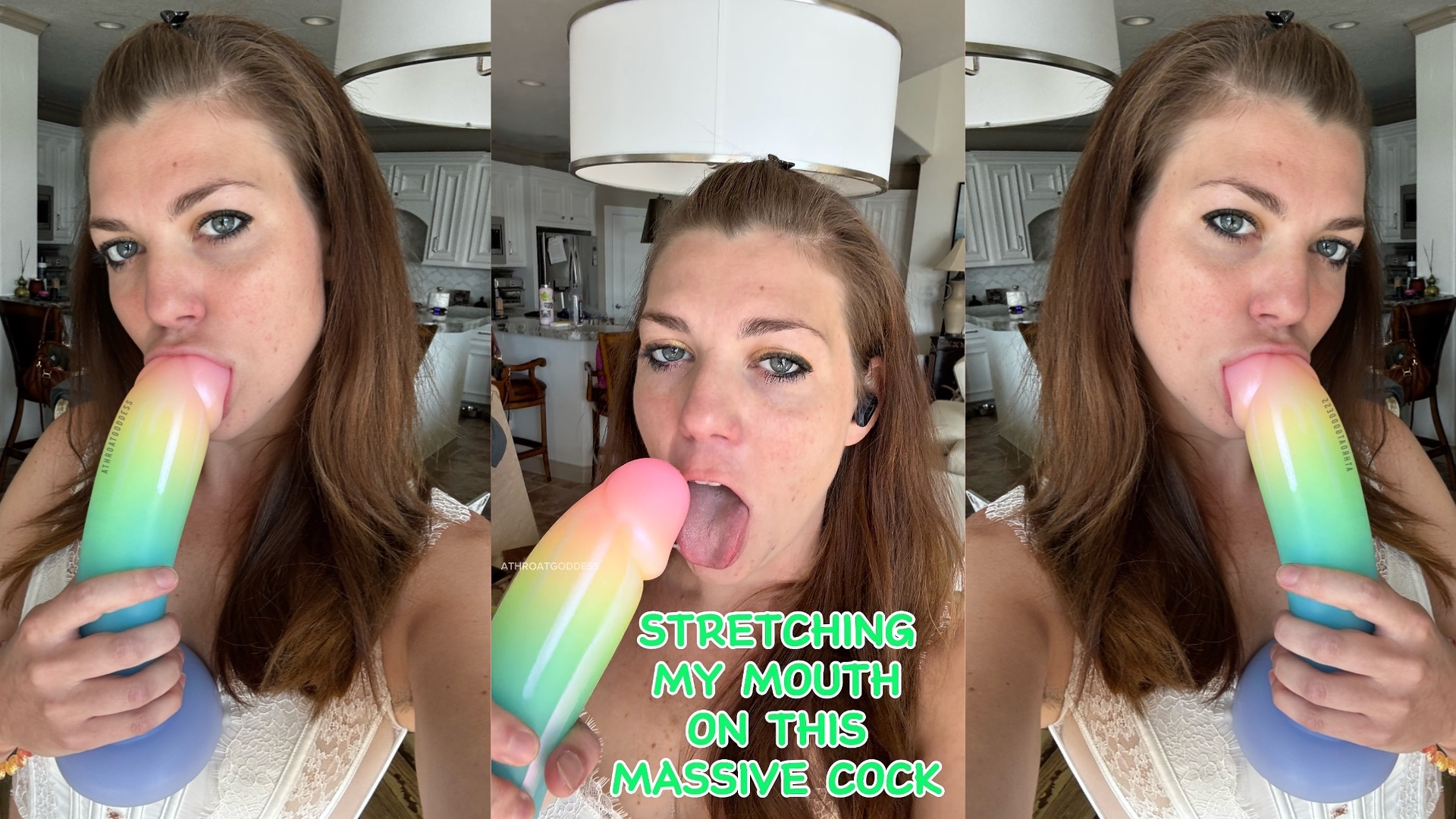 I'm SOOO glad I brought this HUGE toy with me 😍 I didn't think i would use it but I kept eyeing it wondering if it would fit!! Curiosity got the best of me and I had to try!! This video has delicious slurpy noises, the sweet sounds of a cock hitting the back of my throat, and I talk about how big...