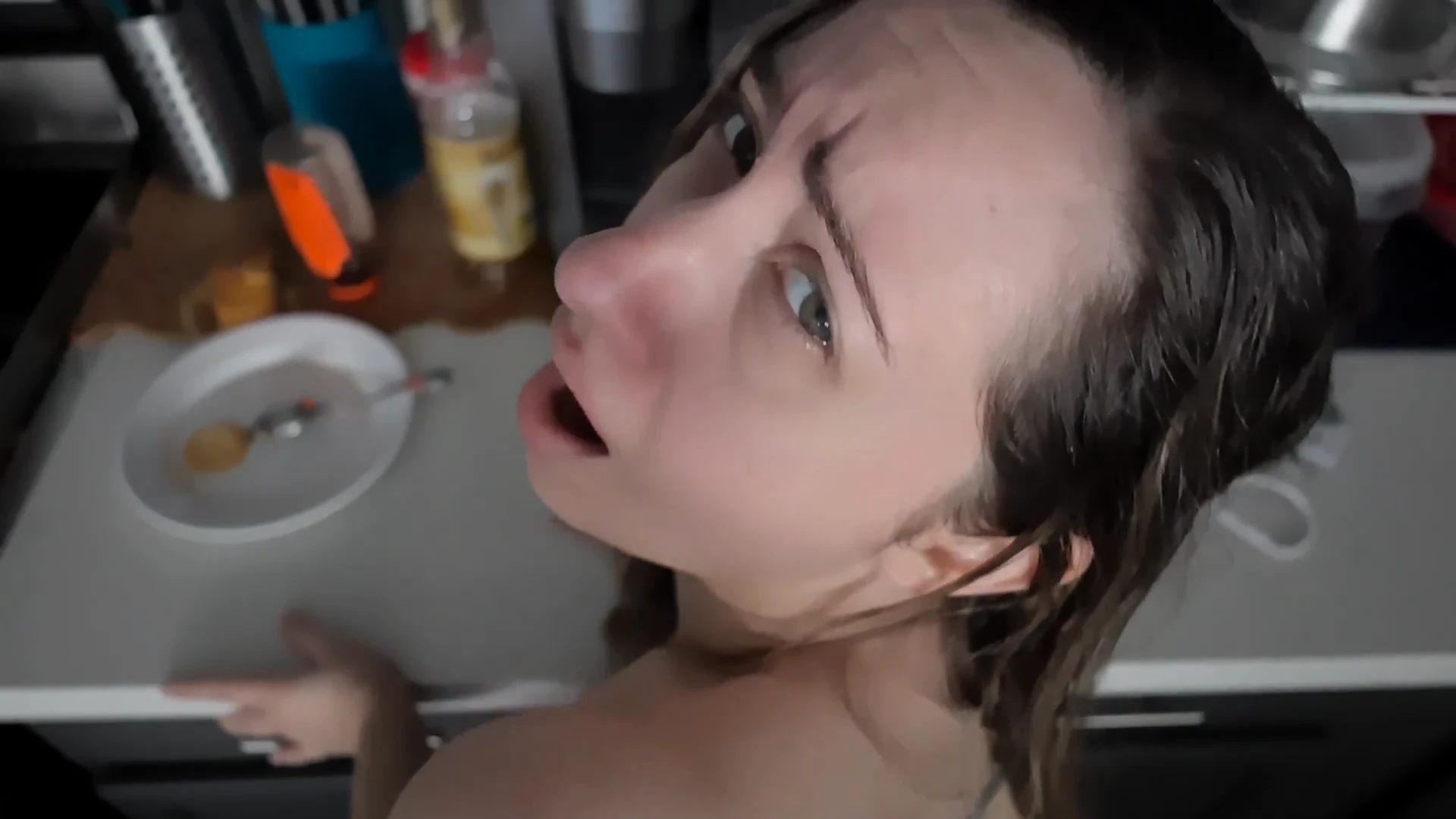 Your step-mom is making snacks for your step-dad and his friends for the backyard party. You surprise your step-mother by hugging her, kissing her neck, and feeling her up. You are very forward, even to the point of slipping your fingers in her pussy and fucking her. She is not on birth control but she wants you to cum in her so badly! Almost got caught by step-Dad too!