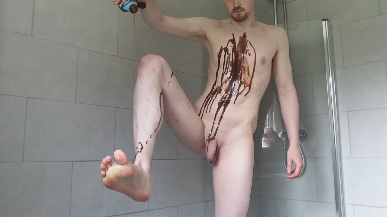 Trickling Chocolate Sauce Over My Body