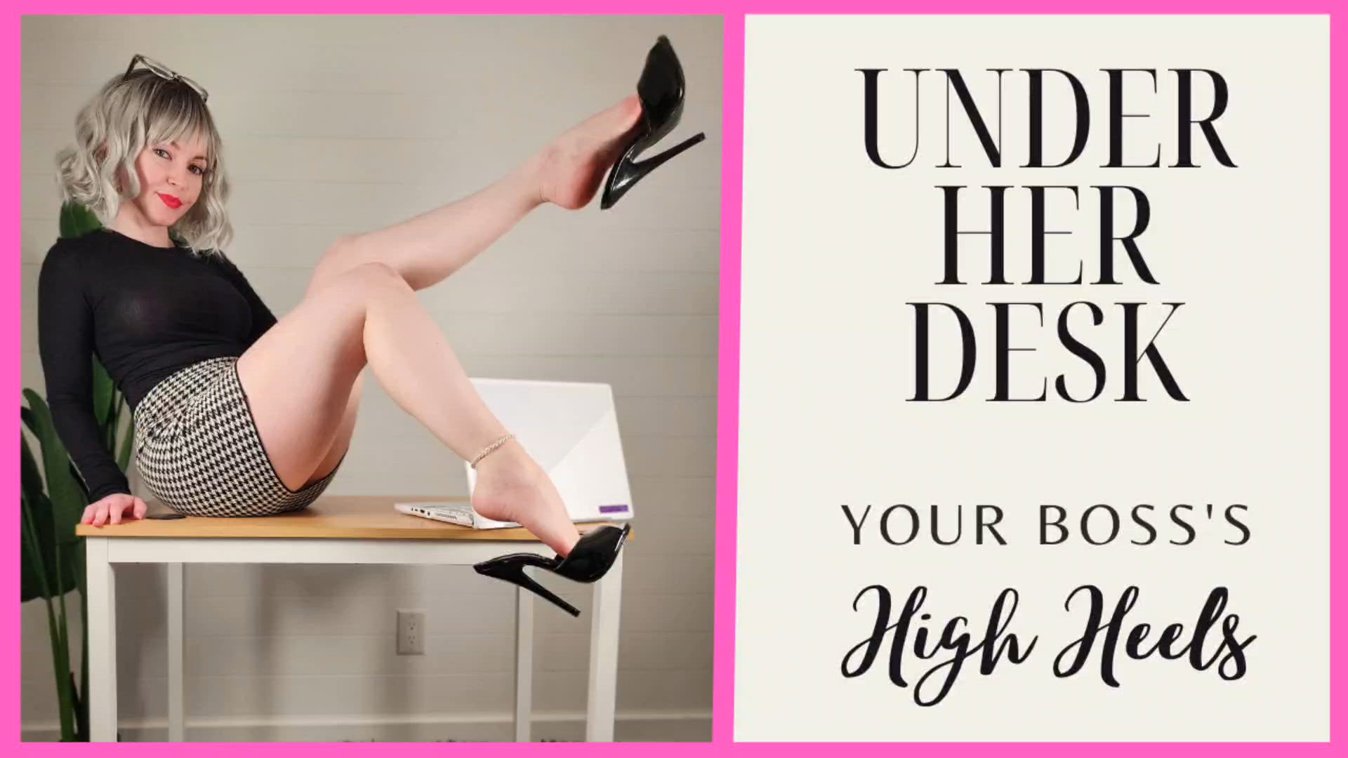 You were our department's top performer last quarter! That's what, 3 quarters in a row now? Congratulations! And, as you know, top performers are entitled to a SIZABLE bonus. This quarter it's $20,000. But we have a little agreement that I'll always get to pocket your bonus in exchange for some foot fun. I think 2 footjobs a week are in order for thi...OH MY GOD. My boss is video calling me. QUICK - GET UNDER MY DESK. What?! Oh, that deliciously smell is my old flats that I keep down there. You'll be fine, you know that you like that aroma anyway. Now just stay under my desk until this call is over. I'll dangle and play with my high heels as a little show for you. When I'm done, we can finish discussing that footjob bonus.