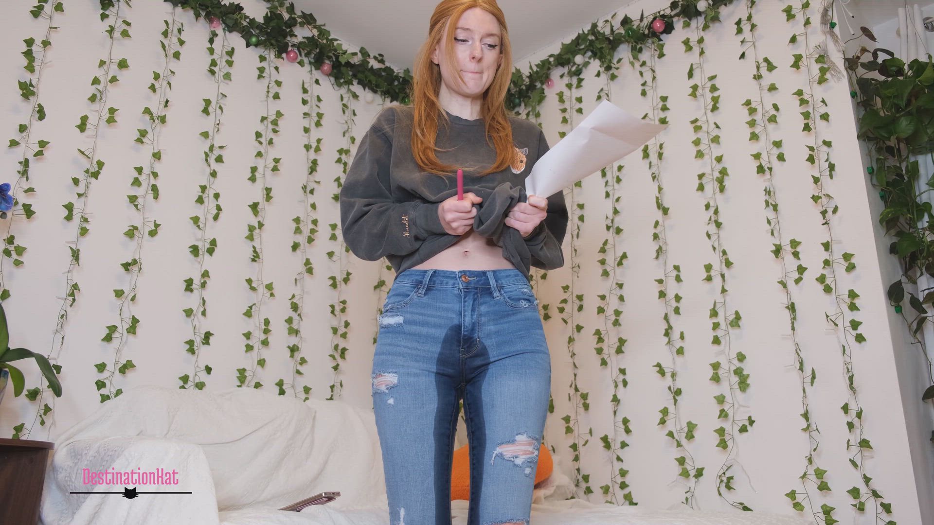 I teach a college class and one of the students is late. She needs to use the restroom but I tell her no and that she needs to wait until break. As I teach, I begin dancing around because I also need to pee. Eventually, I can't hold it in any longer and begin letting piss slip into my jeans until I...