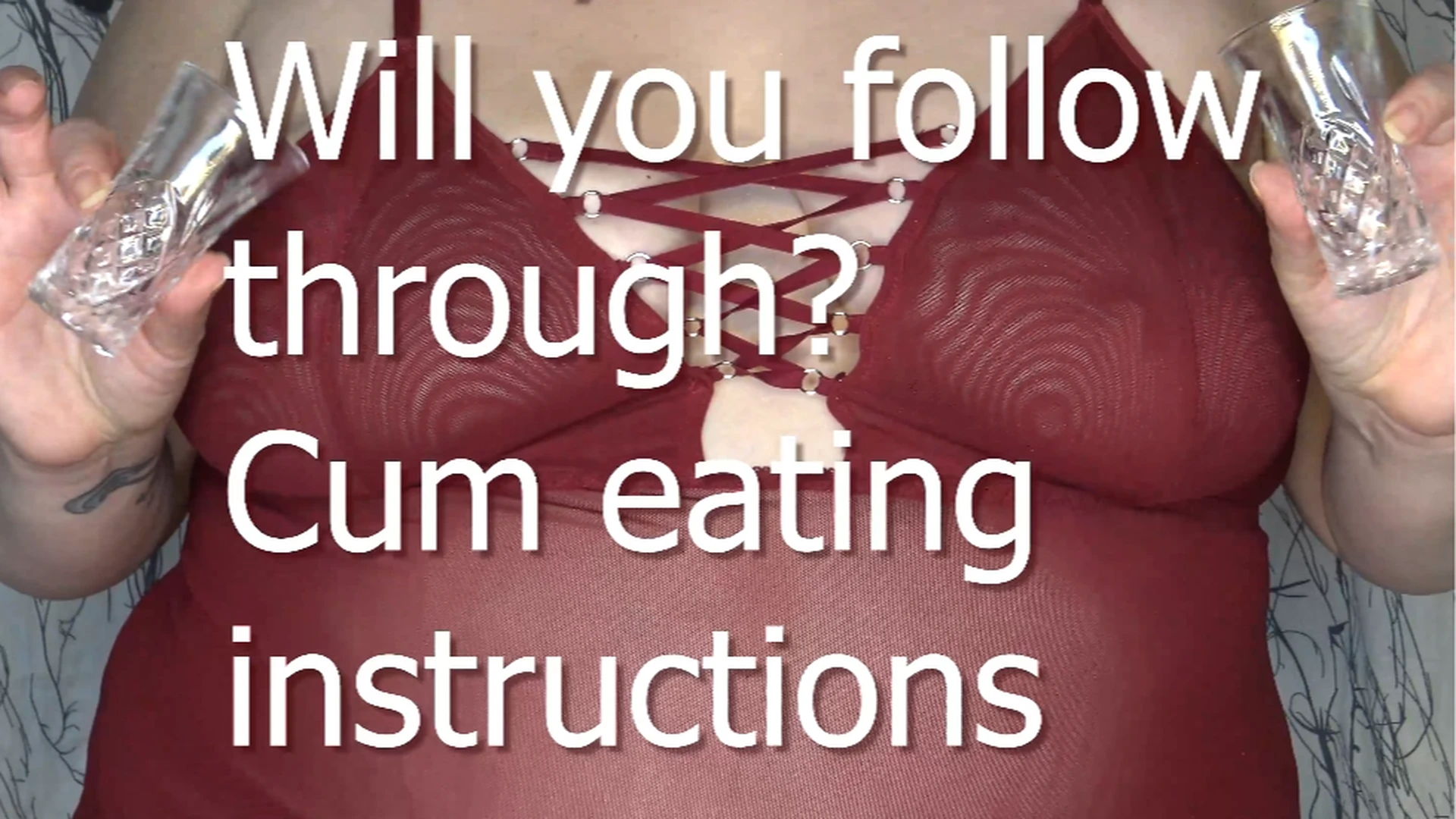 You have been talking about eating your own cum for ages. Today you have promised you will follow through. So here we are, you will cum in a crystal shot glass and swallow every creamy drop!