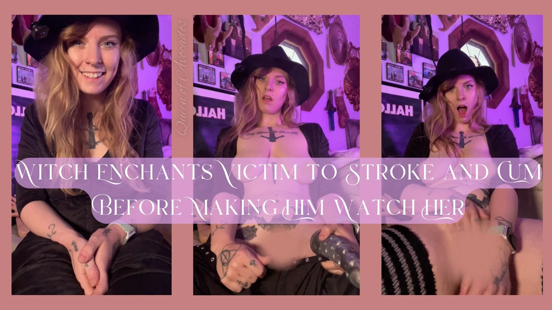 Witch Enchants Victim to Stroke and Cum Before Making Him Watch Her