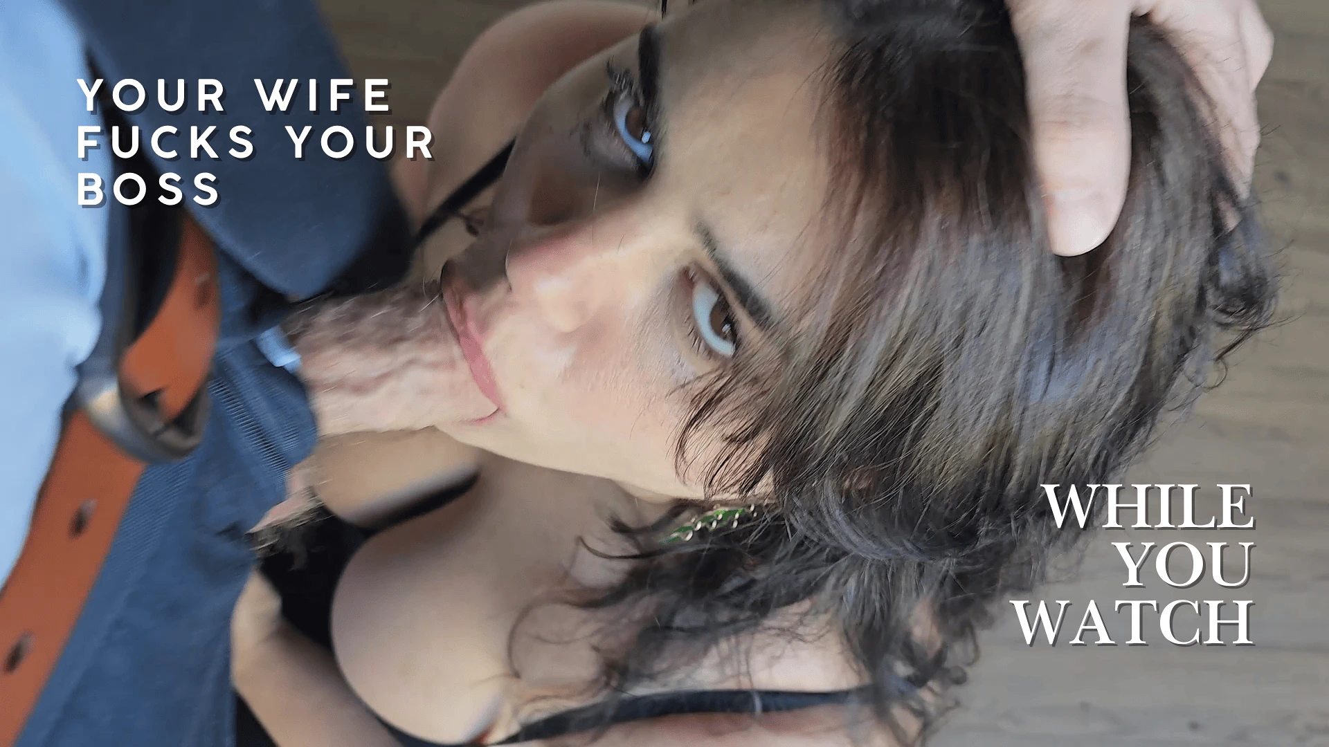 Turns out your performance at work is poor, now your wife knows you’re about to get fired, and that you get bullied. She’d rather fuck him, even if that means humiliating you to your face by dropping to her knees for him and offering her pussy to him to creampie.