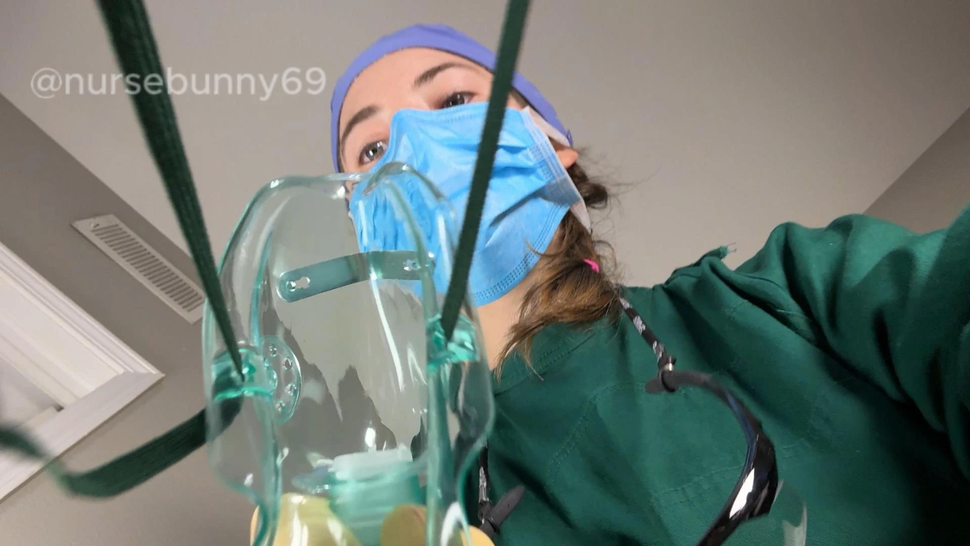 You are on Nurse Bunny's operating table completely vulnerable and exposed. She decides while you're in her control to do whatever she want with your strapped down body. She puts on her surgical gloves and gives you an oxygen mask before pleasuring you until you cum. She collects a sample of your semen before passing you on to the next surgeon waiting to have some fun with you. She's wearing a green surgical gown, blue tie on mask, blue scrub hat, tight surgical gloves, and loupes. No nudity. 1080p version.