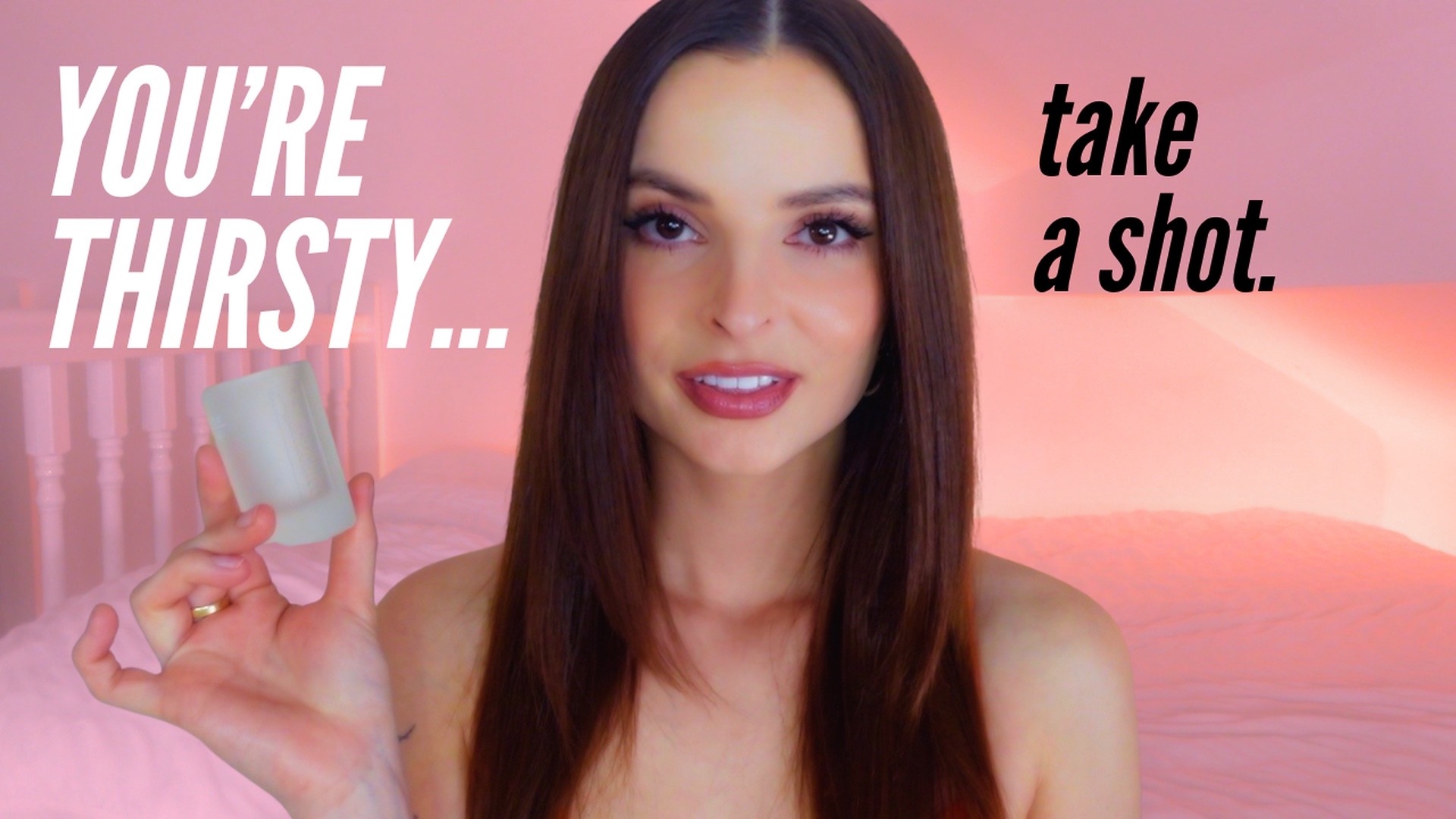 I'm sweetly encouraging you to swallow a shot of your own semen... it's exactly what you need! but before eating it, you WILL savour it. Swilling it around your tongue whilst I count you down. Your thirst can only be quenched by a measure of your own jizz - we both know it! Jerk off for me and finish right into the shot glass. You deserve to have all of your cravings satiated, like the good boy that you are!